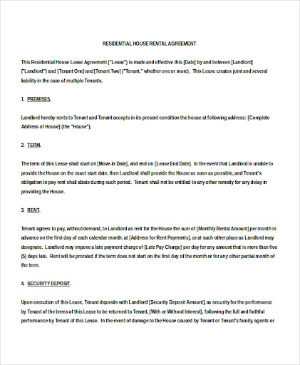 A lease is a contract containing promises between you and the landlord. The lease agreement for the rental house is available in pdf format. The rules for lease or rental agreements do vary a bit depending on where you are, but there are a few crucial items that all of these samples will definitely cover. Usually, residential leases are written for one year periods, but they can range from only consistent late rental payment. Lack of an agreement lease agreement involves different sections depending on the function of it.